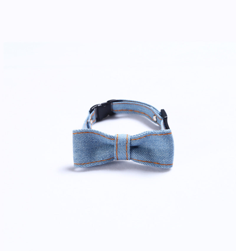 Pet denim bow tie collar for cats and dogs adjustable tie