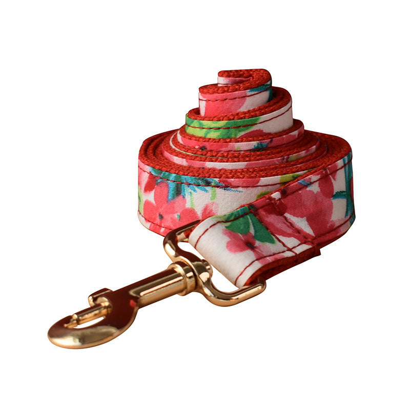Red Floral Print Dog Leash Collar